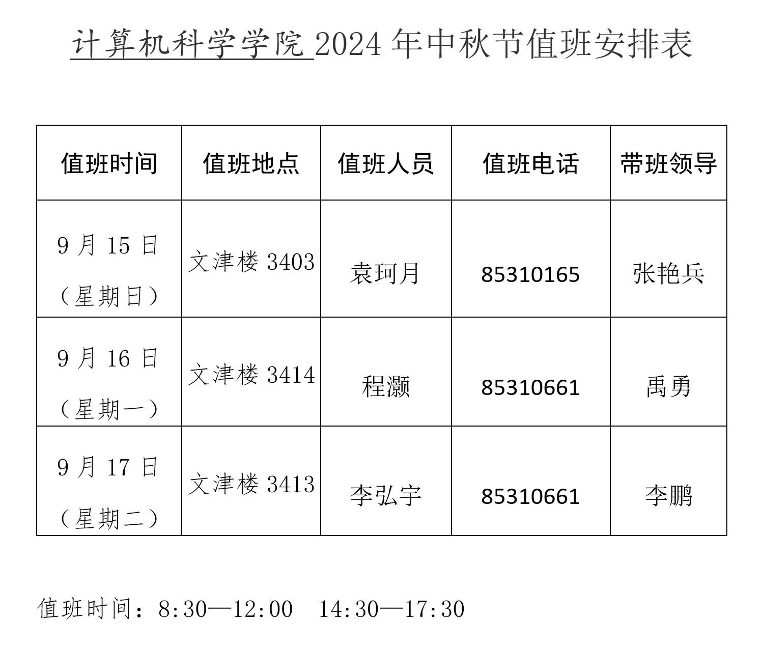 计算机科学皇冠体育博彩 2024年中秋节值班安排