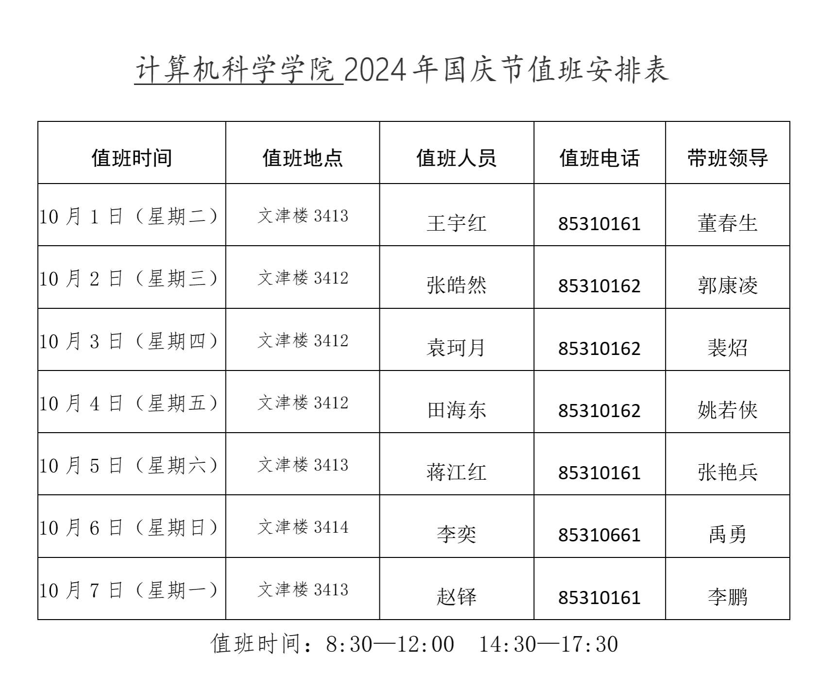 计算机科学皇冠体育博彩 2024年国庆假期值班安排