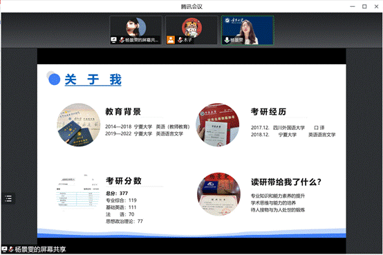 2022届优秀研究生毕业生、现就职于宁夏医科大学的杨景雯为2023届毕业生开展考研报考辅导讲座。