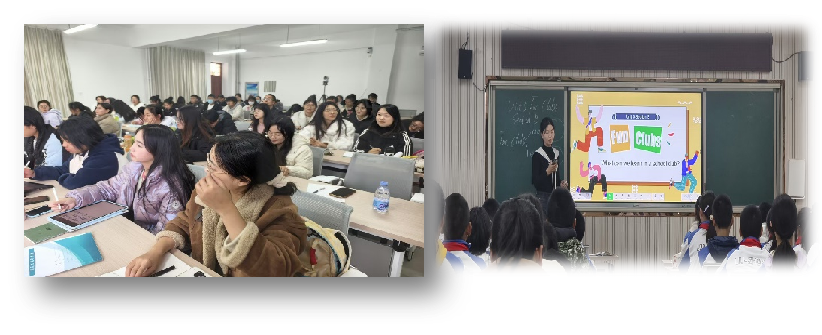 随后,银川市第二十四中学丁娟老师和银川六中李佳辉老师围绕第五单元“What can you learn in a school club”展开示范课教学。两位老师教学风格各有千秋,丁娟老师讲解细腻入微,注重知识点的层层递进与学生的个体反馈;李佳辉老师则充满活力与激情,以丰富多样的教学手段带动课堂节奏。积极的课堂互动与生动有趣的教学内容充分展现了英语课堂的独特魅力,让同学们仿佛置身于丰富多彩的校园社团活动中。