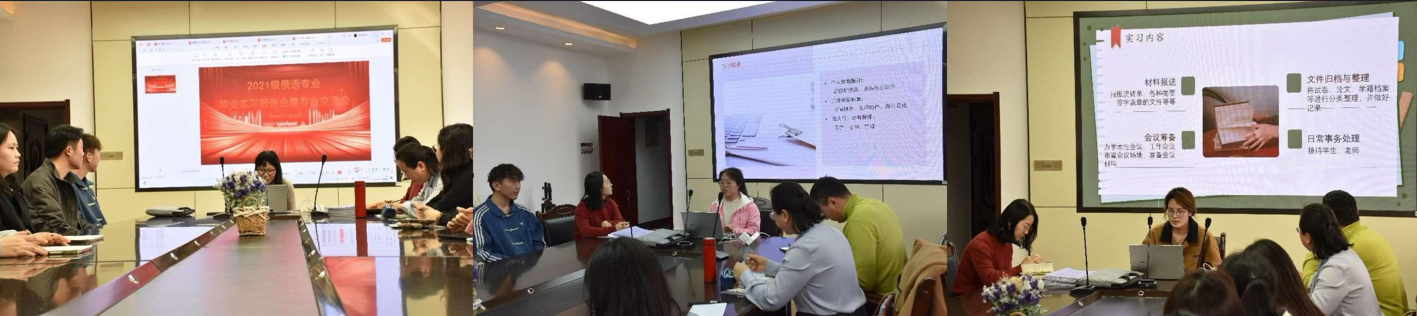 俄语专业举行了2021级毕业实习报告会暨专业交流会。俄语专业师生通过成果展示、经验共享和评价建议,搭建起跨年级的成长对话平台。
