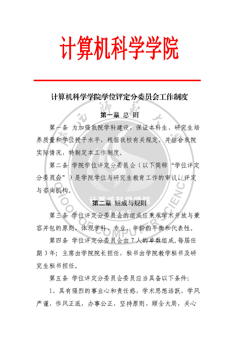 计算机科学皇冠体育博彩 学位评定分委员会工作制度