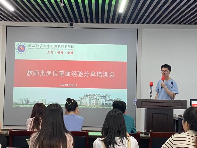 于6月6日下午在文津楼3425召开了教师笔面经验分享培训会,培训会邀请2023届毕业生陈可钧、郭金杰两位教育类硕士,分享教师类岗位笔试面试经验。本次活动由研究生辅导员袁珂月、刘柱主持。
