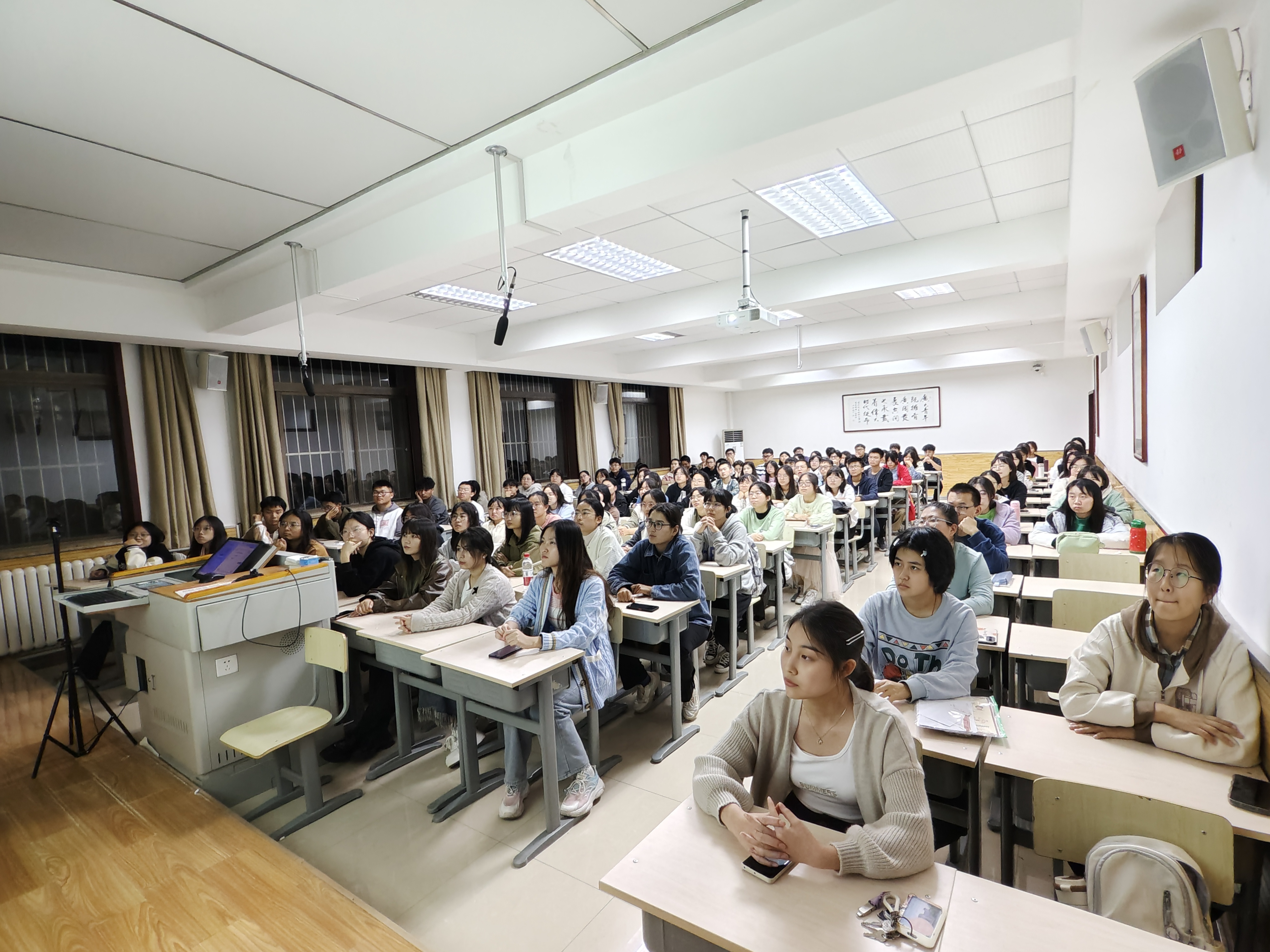 2023年国家奖学金获得者王子浩、丁泽元、孙玲芳、周一卓、林炜希、林佳欣、马蕾,优秀保研学子朱佳轩、赵佳莹、董立人,2023级全体学生到场参加。分享会由梁星宇主持。