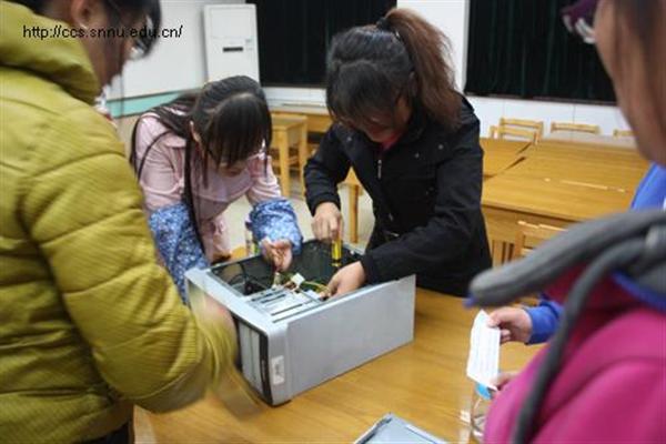 交流会上,刘博老师对计算机主机箱的硬件构造,布局做了整体的说明。接着又分别对其中一些关键部件做了功能及原理上的阐述。老师用活泼生动的言语感染了整个交流会的现场,交流会在大家的欢声笑语中顺利进行着。随后在老师的指导下同学们都积极的参与到主机箱的拆装过程中。期间同学们在小组讨论和老师的帮助下都对主机箱的内部结构及功能有了更进一步的了解。最后老师又对同学们提出的就日常生活中常遇到的一些硬件及软件问题一一进行了耐心解答。