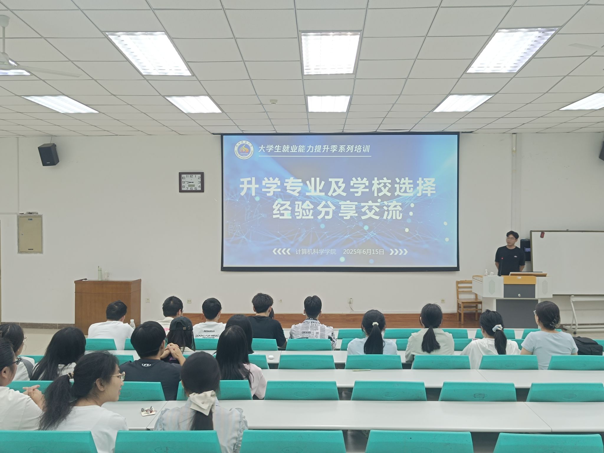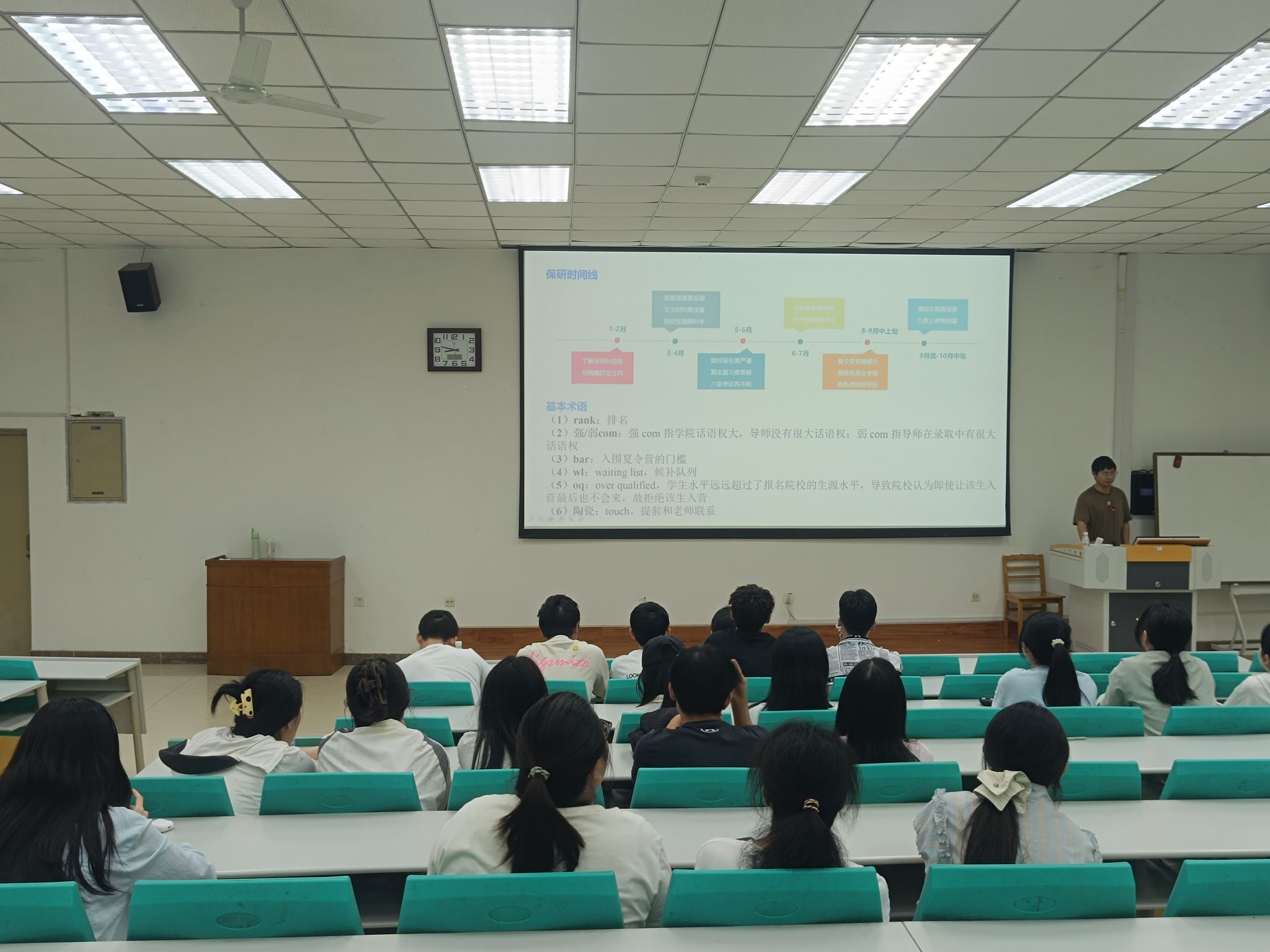 肖嘉聪、周一卓两名优秀学生代表从不同皇冠体育博彩 角度围绕前期准备、科研竞赛、简历撰写、参加夏令营等方面进行了详细的介绍,建议大家提早准备、增强自信、多投简历,并和现场学生进行了交流互动。