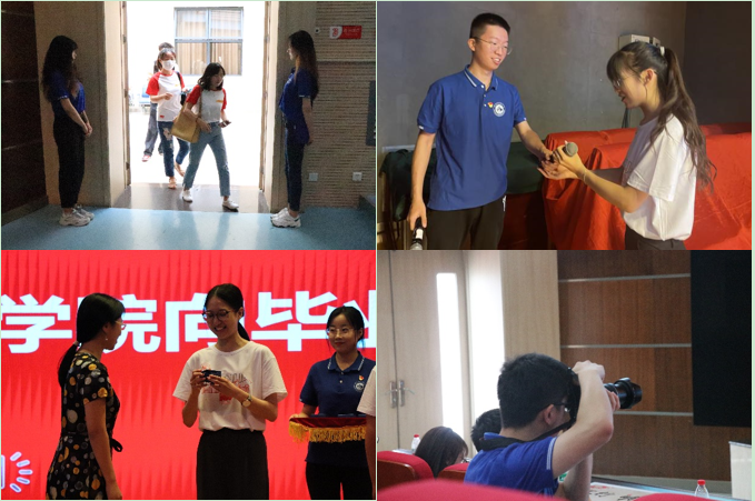 典礼开始后,同志们各司其职,分别在剧场门口引导学生入座、在中控室播放毕业典礼的相关视频及资料、在后台为表演人员递送演出用具、协助老师们颁发奖品、在会场内拍摄活动照片......为典礼的顺利进行保驾护航。