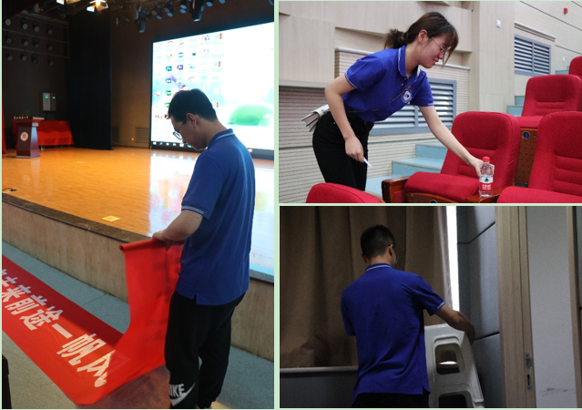活动结束后,同志们留在学生剧场内进行收尾工作,将物品归置原位并将剧场打扫干净,得到了老师们的一致好评。