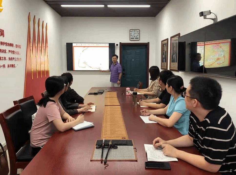 然后,讲述了我党又一个重大历史事件-长征,用一张张图片,让各位支部老师再一次身临其境感受红军为了第五次反围剿,开始的艰难征程(翻雪山、过草地、强渡大渡桥、四渡赤水、遵义会议等)。黄老师特别指出正是遵义会议的召开,才使中国共产党在政治上开始走向成熟。这次会议,在极端危急的历史关头,挽救了党,挽救了红军,挽救了中国革命,在中国共产党和红军的历史上,是一个生死攸关的转折点。会议确立了毛泽东在红军和中共中央的领导地位,中国革命的航船终于有了一位能驾驭其进程的舵手。