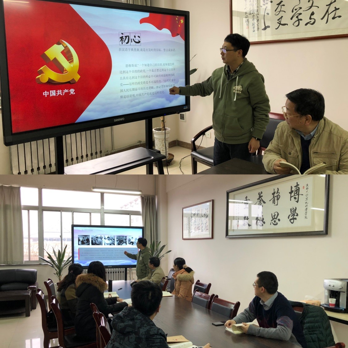 在本次教育活动上,支部书记黄昭老师首先以“不忘初心、牢记使命”为主题讲授党课。黄昭老师以主题教育总要求的内涵为切入点,详细讲述了“不忘初心、牢记使命”主题教育的根本任务以及具体目标。通过中国近代以来的三段历史,告诉大家中国共产党人的初心和使命是从哪里来的?为了使中华民族得到解放,为了实现人民的统治,为了使人民得到经济的幸福。这就是共产党人初心和使命最早的注脚。并指出中国共产党自成立之日起就把初心和使命书写在旗帜上,并为之进行不懈斗争。进入新时代,人民的生活水平有了很大提高,但依然要不忘初心、牢记使命。随后,他讲到新时代共产党人必须理解“四个意识”、“四个自信”以及“两个维护”的具体内容,并就教育改革中的“九个坚持”,结合支部的发展进行了详细的论述。