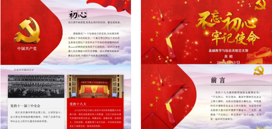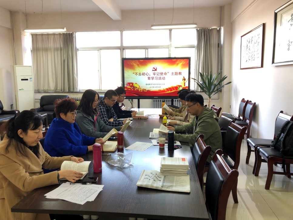 为深入认真学习贯彻习近平总书记重要指示精神和中央部署要求,把深入学习贯彻习近平新时代中国特色社会主义思想作为根本任务,2019年9月18日下午,基础教学与信息系统党支部开展“不忘初心、牢记使命”主题教育的支部活动。