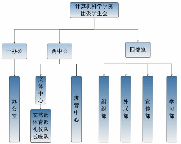 皇冠体育博彩 学生会由“一办公,两中心,四部室”组成。现将具体组织结构予以展示,如下图所示: